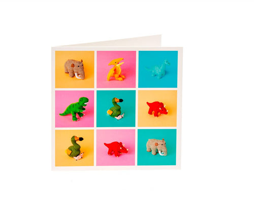 Knitted Dinosaur Toys in Grid Pattern Greetings Card
