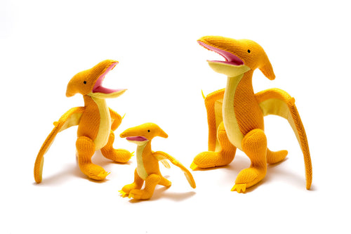 KNITTED DINOSAUR PTERODACTYL SOFT TOY - YELLOW