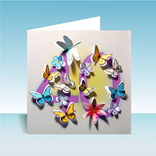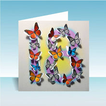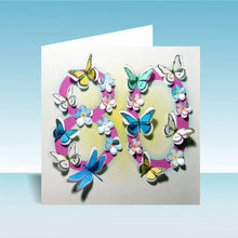 This joyful card features the age number with 3d pop-out laser cut butterflies.
