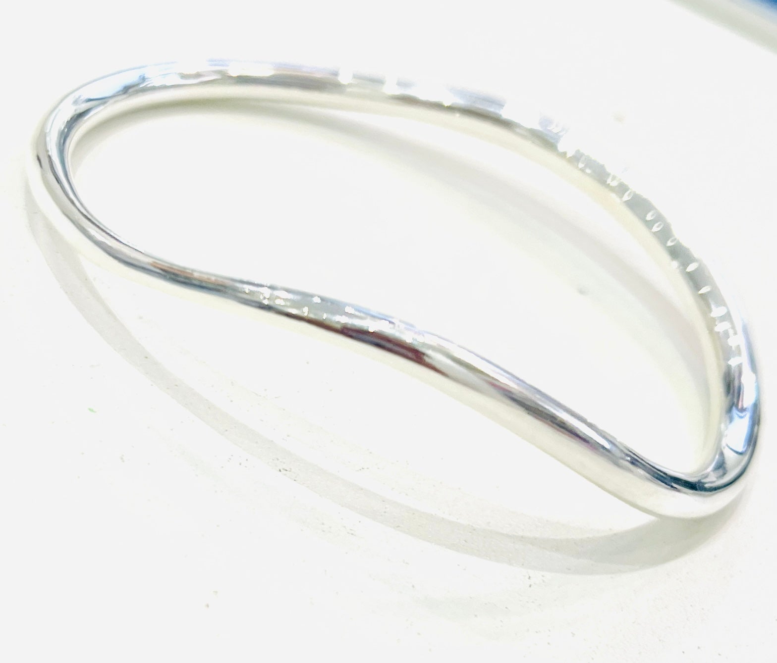 Handcrafted in solid sterling silver, it features a smooth, flowing form with subtle curves that feel elegant and comfortable on the wrist.