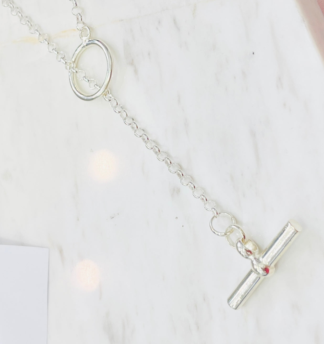 Stunning 32" long Sterling Silver necklace with adjustable length featuring a T bar lariat.