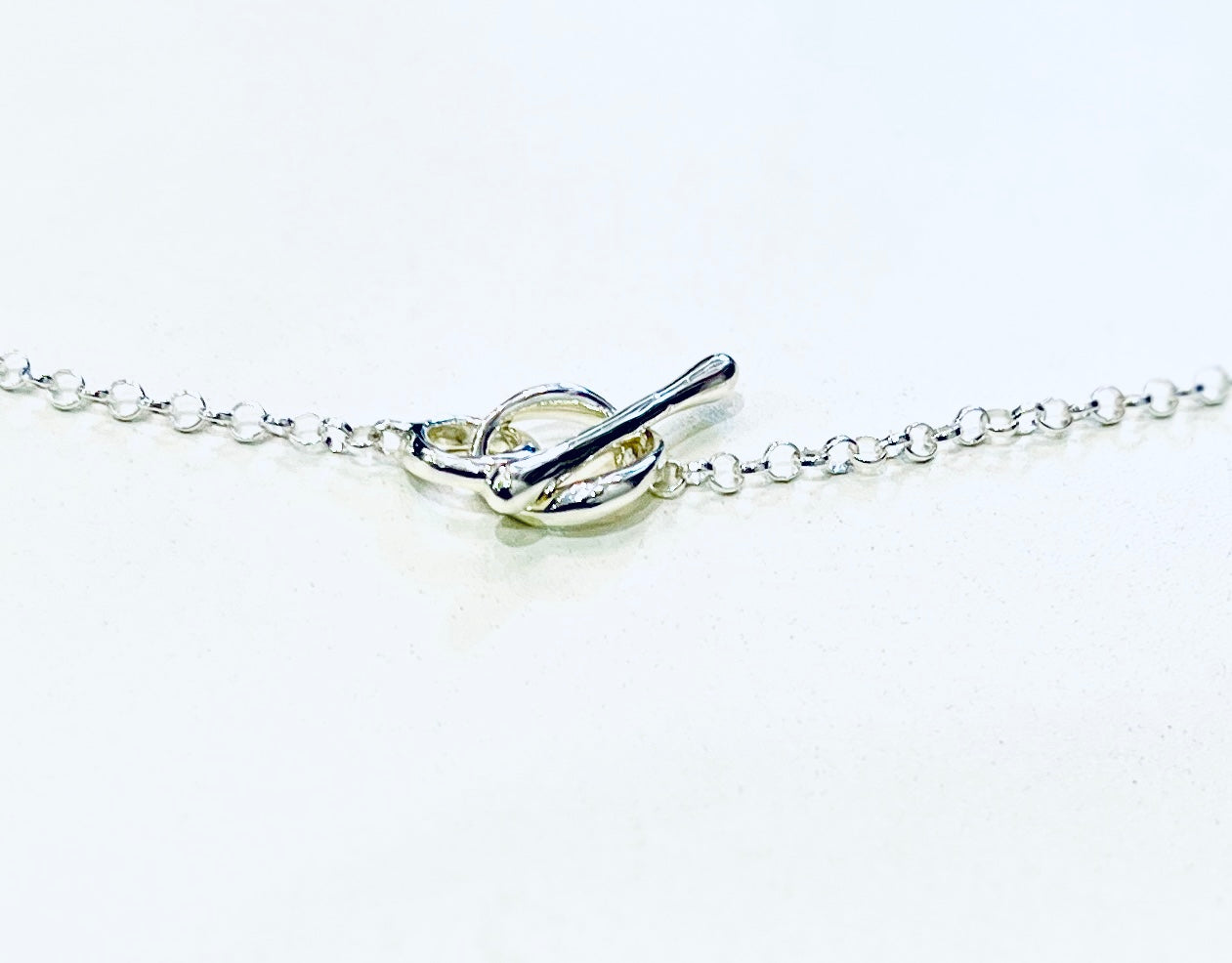 A refined contemporary design from Chris Lewis, this sterling silver necklace features a delicate beaded chain finished with a sculptural toggle clasp that can be worn at the front as a subtle focal point. Elegant, versatile, and effortlessly modern — perfect for layering or as a minimalist statement on its own..