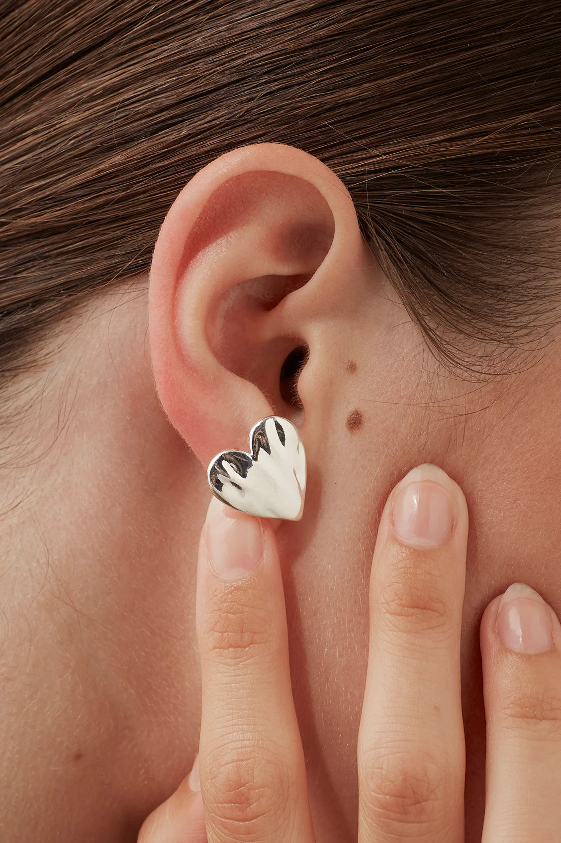 Make a statement with our silver-plated Molten Heart Stud Earrings. Featuring unique textured hearts that mimic molten metal, these chic studs will add a playful, romantic touch to any outfit.