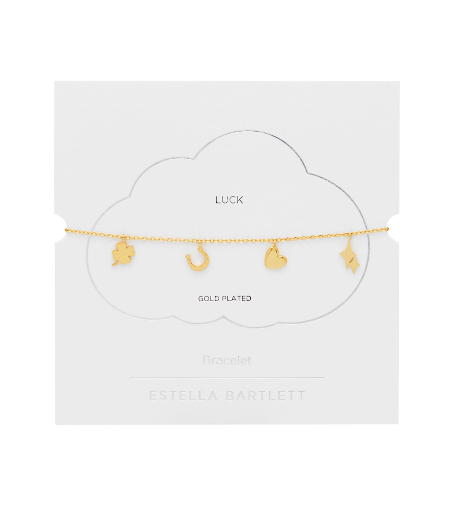 Good luck is bound to come your way when you wear our GOLD-plated Love and Luck Charm Bracelet. Featuring clover, horseshoe, heart and sparkle-shaped charms, this playful piece will make a great addition to your stack.