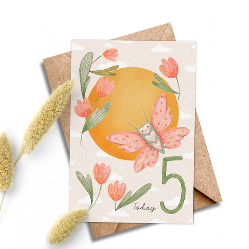 Age 5 Butterfly Birthday Card - Kids 5th Birthday.