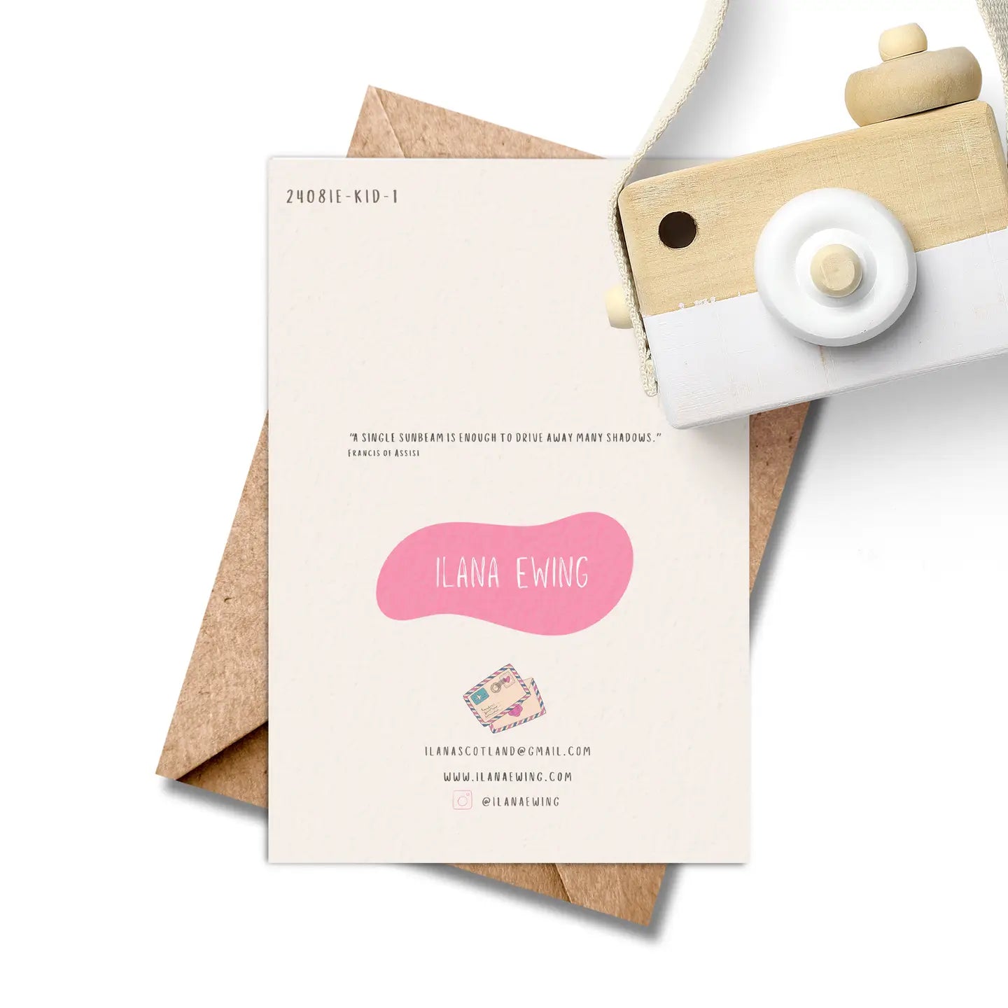 This card showcases a lovely little girl, all set for her birthday party, with flowers in her hair, It’s a fun, lively design that captures the joy and excitement of turning six! Celebrate a special 6th birthday with these charming, hand-drawn greeting cards by Ilana Ewing. Perfect for young children, each card features an adorable design with a unique and whimsical touch. The inside offers plenty of space for a heartfelt message, while the soft, cheerful colors create a festive, whimsical atmosphere. Whether you’re celebrating a curious adventurer or a spirited little jokester, this card is sure to bring giggles and grins on their special day. Features: • Eco-Friendly Packaging: Each card includes a 100% recycled kraft envelope. • Sustainable Printing: Printed on demand using sustainably sourced materials, helping reduce waste. • Recyclable Materials and plastic-free