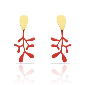 Coral Long Gold Stud Earrings