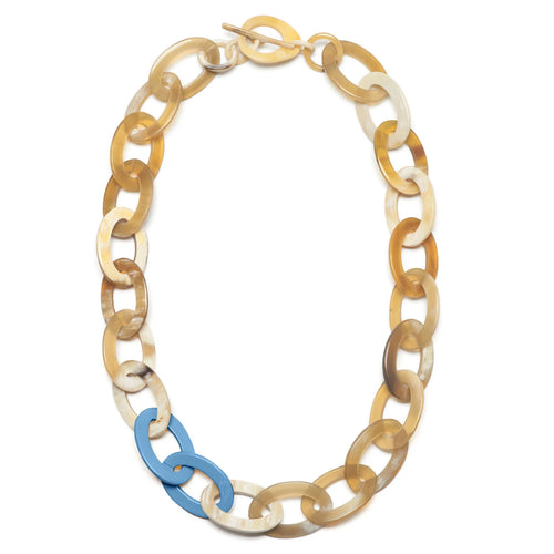 BRANCH Buffalo Horn Oval Link Medium Length Necklace- White Natural and Blue