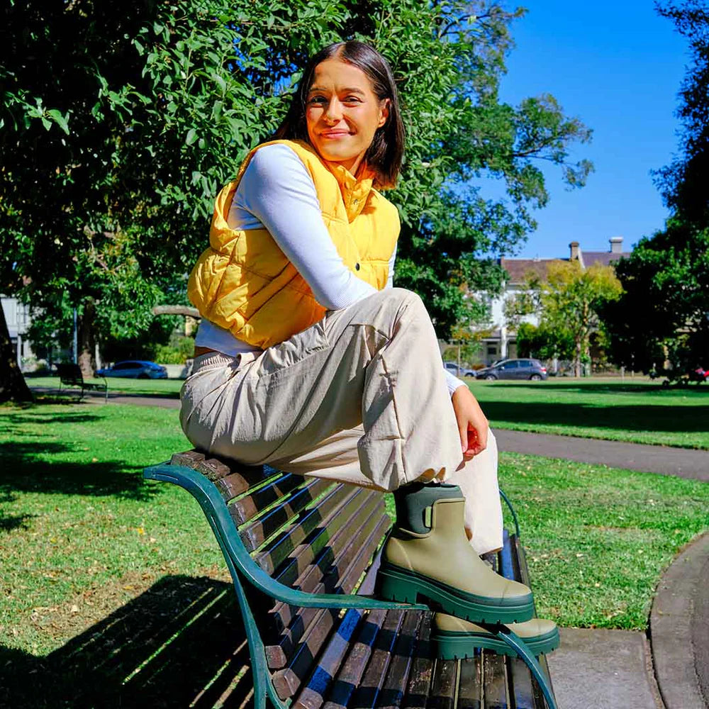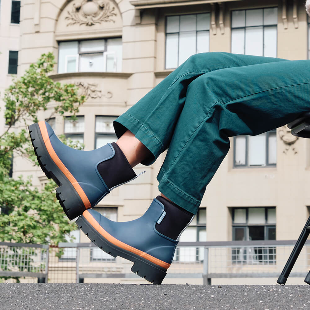 The Tully Boot’s distinct silhouette is a fashion forward take on the classic wellington boot! Playful and urban; Tully nods to 90s nostalgia with a chunky platform-style sole and an extended, wrap around neoprene cuff.