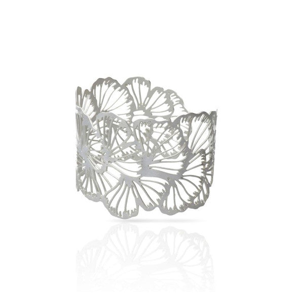 Bracelet | Gikgo Biloba CollectionComposition: Brass | Uneven finish | Silver plated | Layer of lacquerApproximate size: 4 cm width x 6 cm ø (1.57" x 2.36" ø) | Adjustable Designed by RAS®