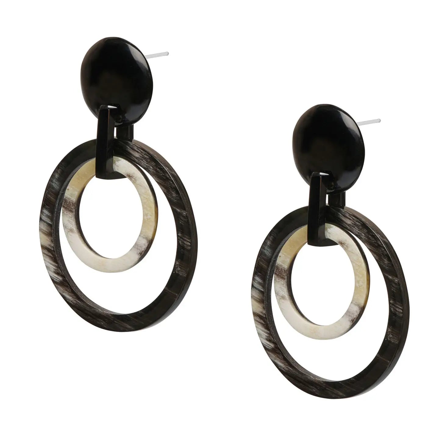 • Load image into Gallery viewer, Double Round Link Horn Earrings - Black Natural